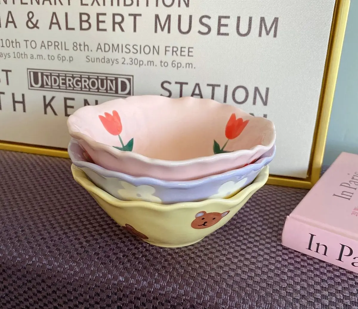 Корейская нишевая миска ручной работы в стиле ретро нестандартный Розовый тюльпан цветок медведь ручная роспись керамическая миска для са...