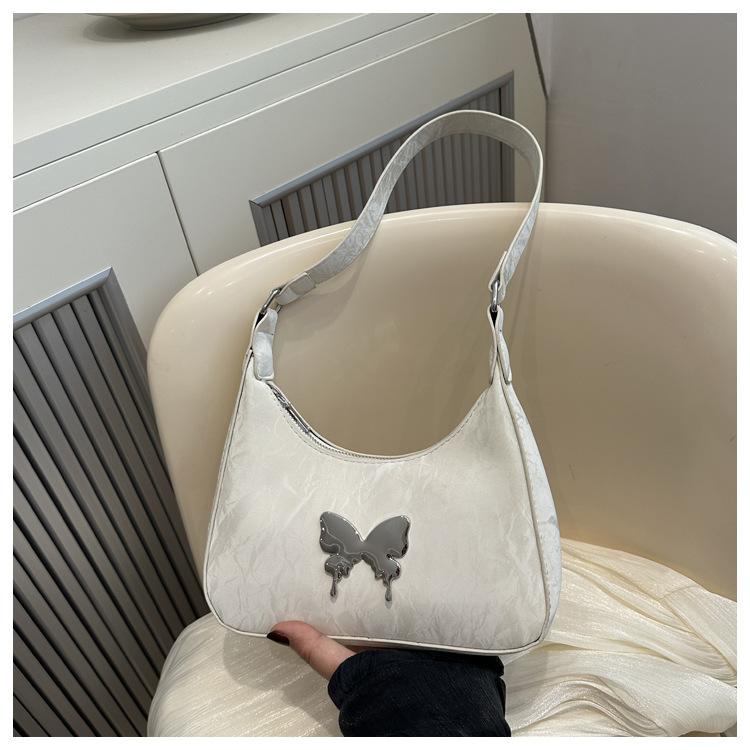 Корейская нишевая сумка подмышкой 2024 года, новая модная простая и универсальная маленькая квадратная сумка, высококачественная декоративная сумка через плечо с бабочкой белый