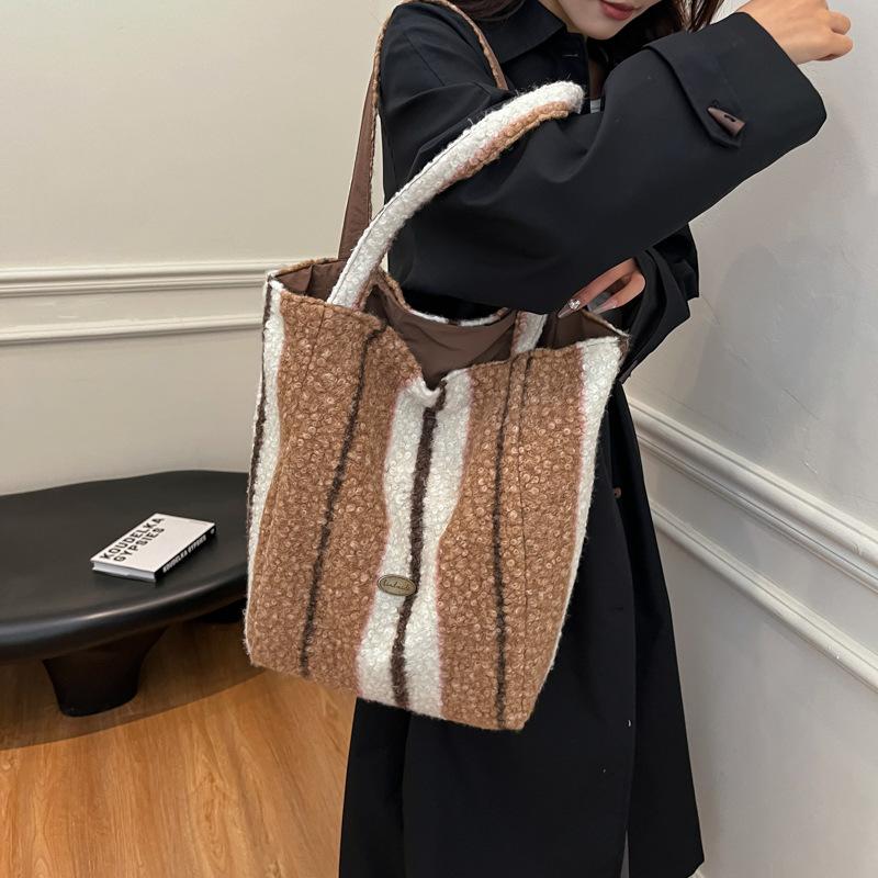 Корейская новая осенне-зимняя плюшевая ленивая универсальная двусторонняя плечевая сумка-тоут, мягкая восковая японская студенческая сумка для женщин 28*17*36