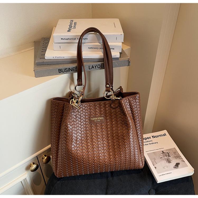 Корейская плетеная сумка 2025 новая сумка через плечо большой вместимости сумка-тоут для поездок сумка-мессенджер для выхода в свет и шопинга темно-коричневого
