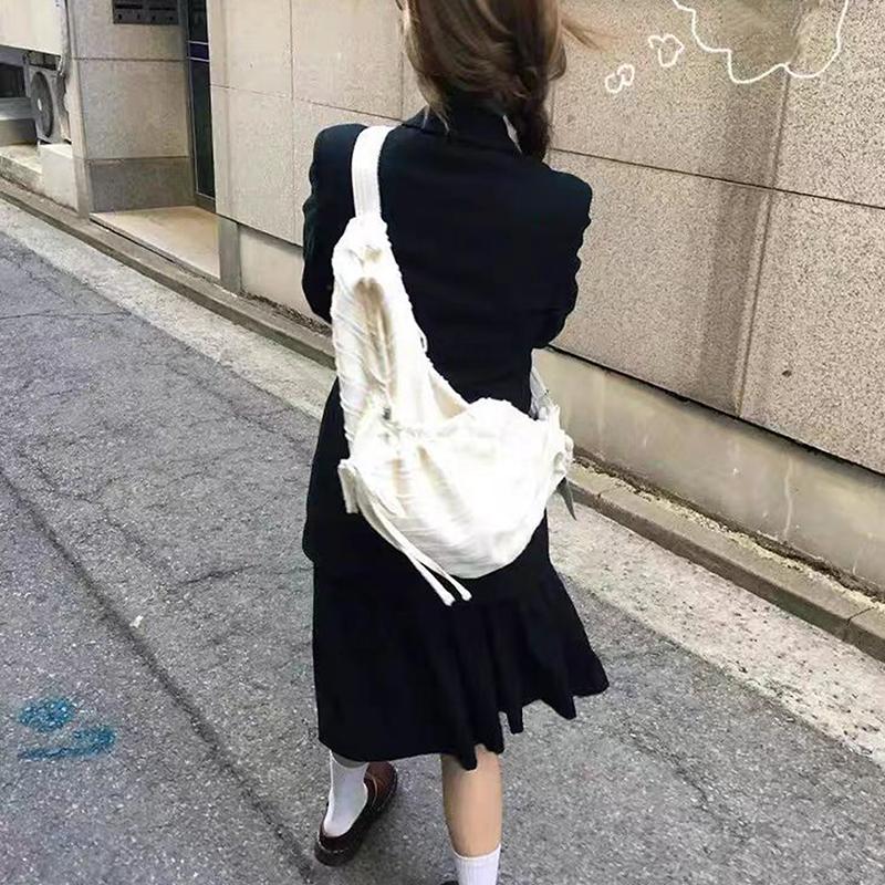 Корейская плиссированная холщовая сумка через плечо, большая вместимость, повседневная сумка-тоут, сумка кроссбоди, сумка-пельмень для женщин, подарок