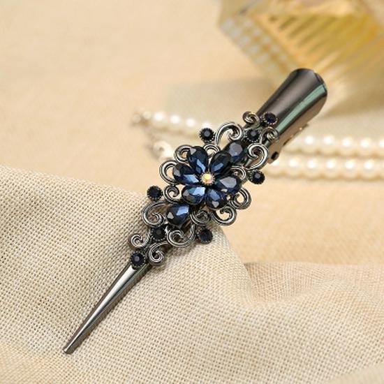 Корейская ретро-заколка для волос с кристаллами в виде акулы - элегантная большая заколка для волос с роговым дизайном синий