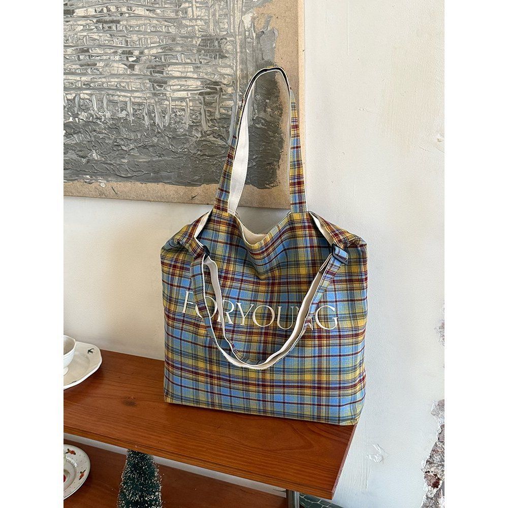 Корейская ретро клетчатая сумка-тоут женская 2025 новая ленивая сумка на плечо большой вместимости нишевая универсальная сумка-мессенджер жёлтый