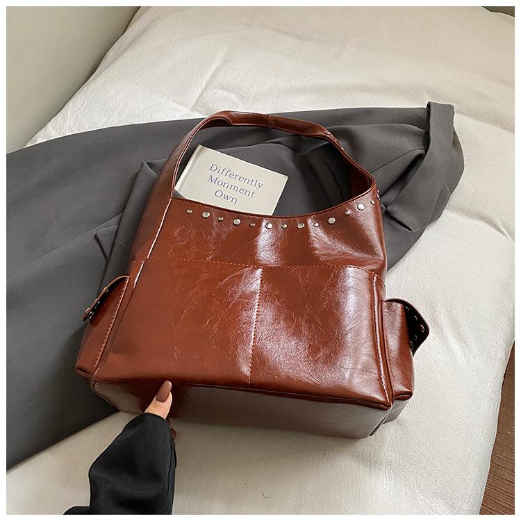 Корейская ретро сумка подмышку высокого класса, новая модная сумка через плечо большой вместимости, кожаная сумка-тоут для поездок на работу из вощеной кожи коричневый