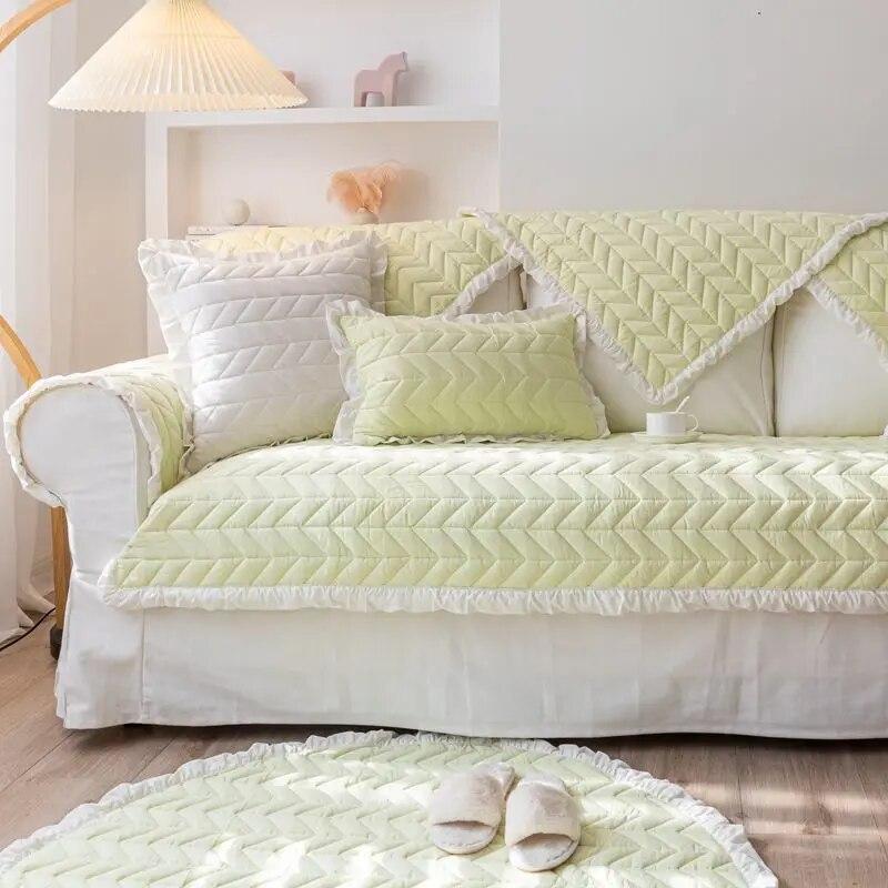 Корейская тканевая хлопковая подушка для дивана ранней весны, простая кружевная стеганая подушка, хлопковая нескользящая универсальная всесезонная подушка для дивана 70x70cm