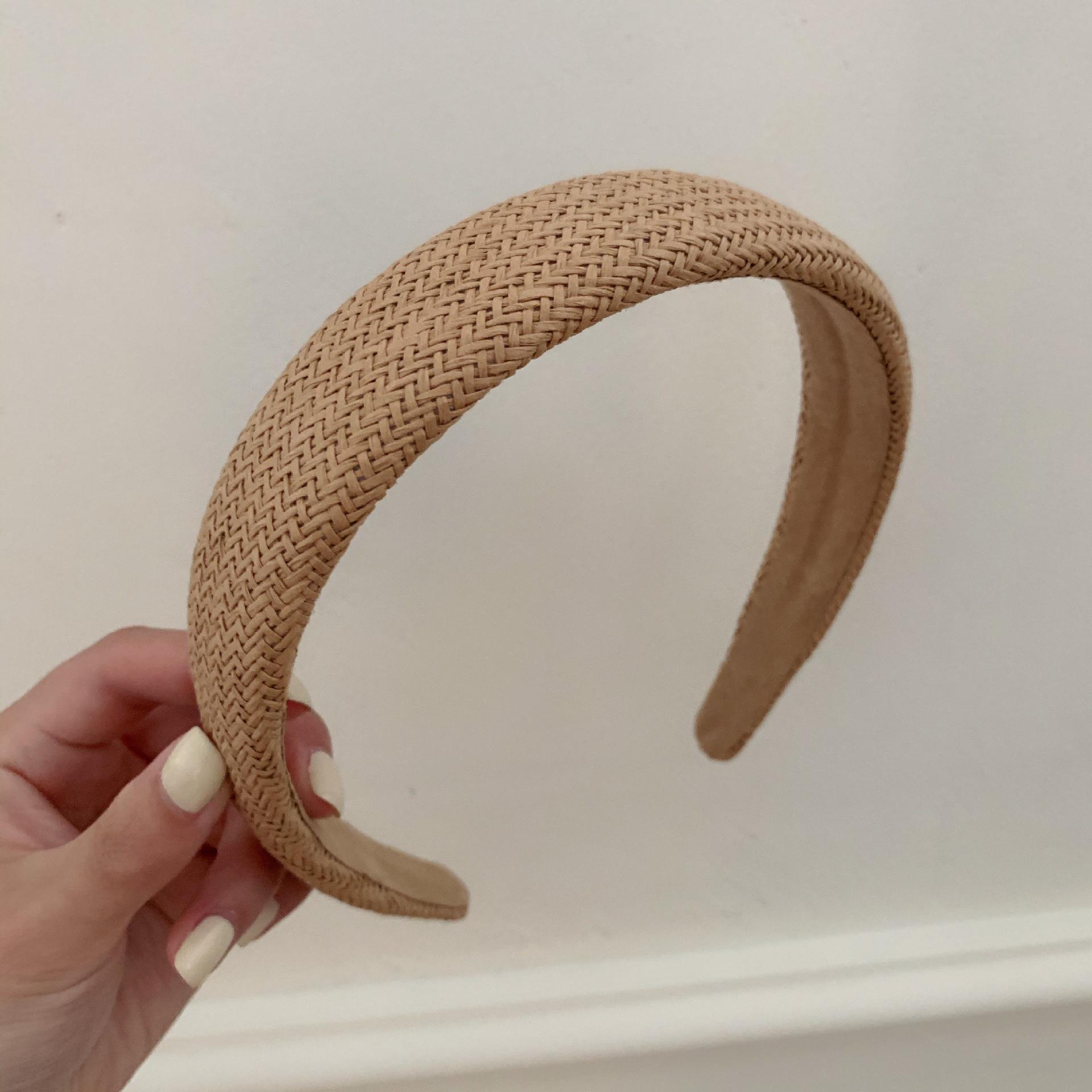 Корейская хлопково-льняная плетеная летняя ретро широкая повязка на голову 2022 коричневый