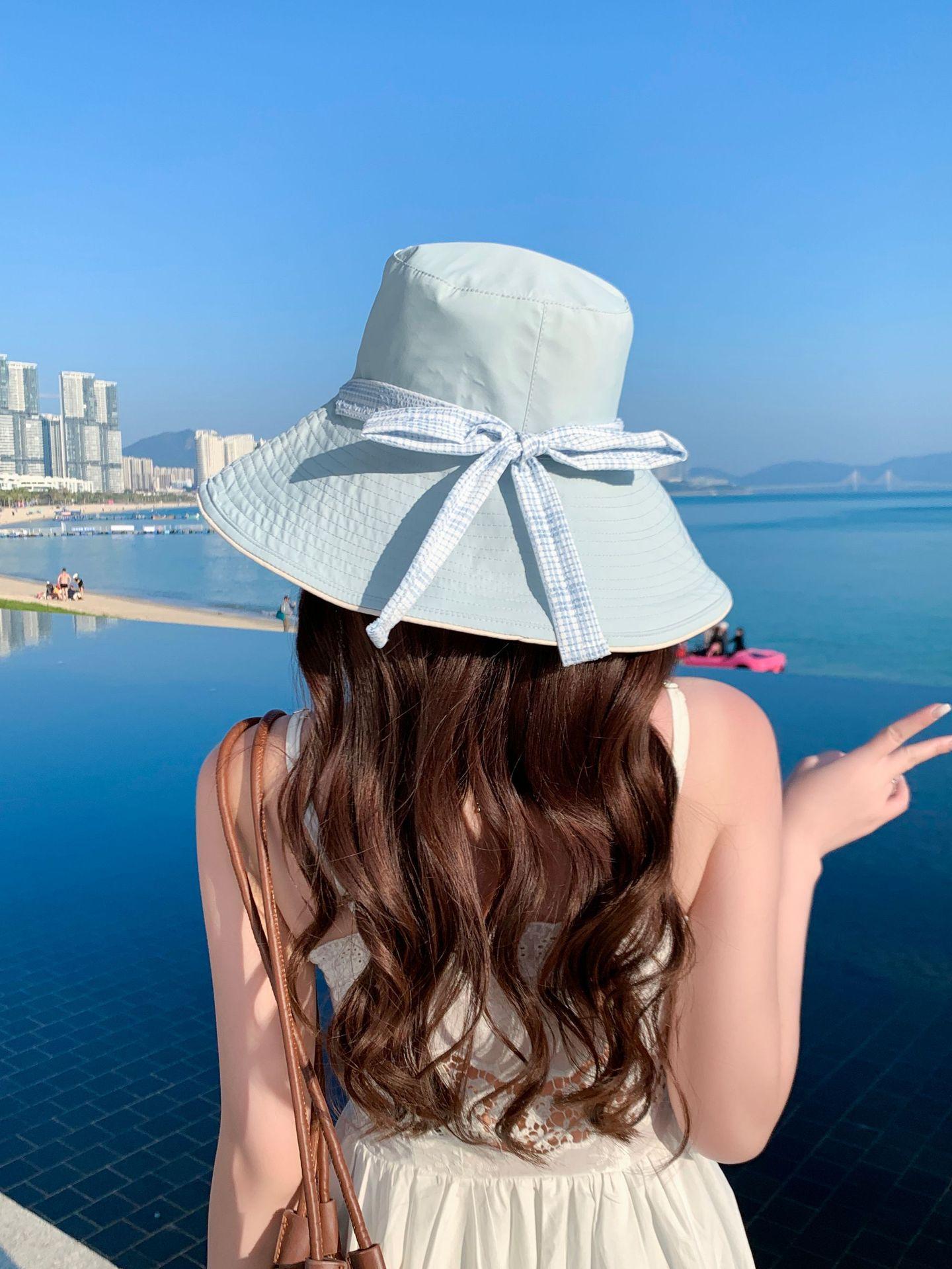 Корейская шляпа от солнца для улицы, для девочек, новая двухсторонняя шляпа-ведро с широким краем, соляная клетка, литературная шляпа от солнца, замедляющая старение M(56-58cm)