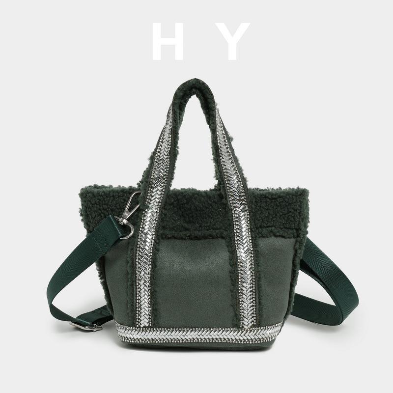 Корейская и японская большая женская сумка-тоут со стразами армия зеленый