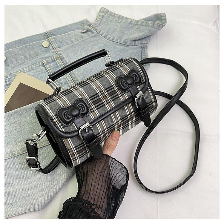 Корейская ins маленькая сумка женская 2025 новая ретро клетчатая портативная сумка-подушка нишевая текстура сумка-мессенджер для поездок на работу чёрный