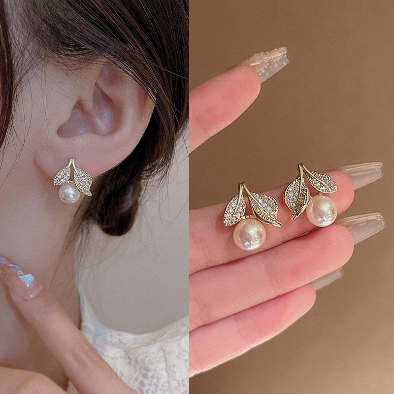 Корейские листья, полные бриллиантов и жемчуга, летние модные универсальные серьги