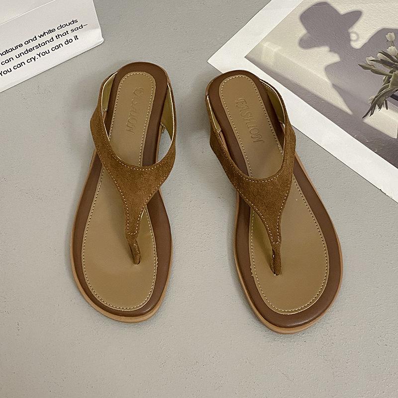 Корейские ретро тапочки с носком женские для улицы 2025 лето новая плоская подошва повседневный отпускной стиль шлепанцы пляжные сандалии 40 коричневый