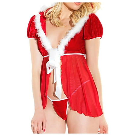 Zuwimk Lingerie For Women Women Lingerie Lace Babydoll Strap Chemise Teddy V Neck Sleepwear Black XXL
