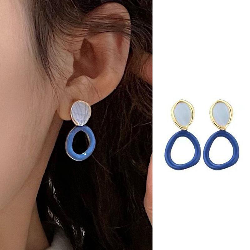 Корейские элегантные темпераментные синие серьги с неправильной геометрией, модные женские серьги, вечерние ювелирные изделия, подарок