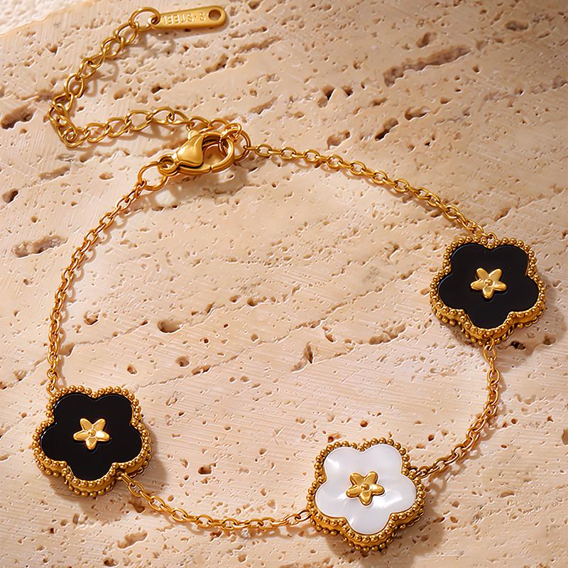 Корейский браслет из ракушек с пятилепестковым цветком: Женская легкая роскошь, не выцветающая титановая сталь.