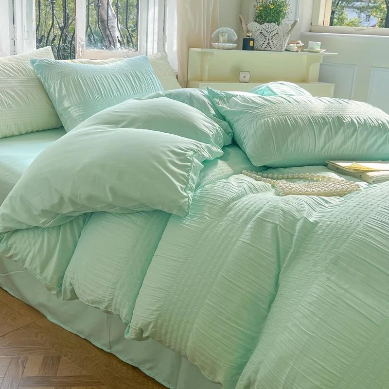 Корейский комплект постельного белья из хлопчатобумажной ткани принцессы, пододеяльник, плоские простыни, наволочка, комплект простыней, мягкое одеяло, комплект постельного белья Twin 4pcs Big Sheet