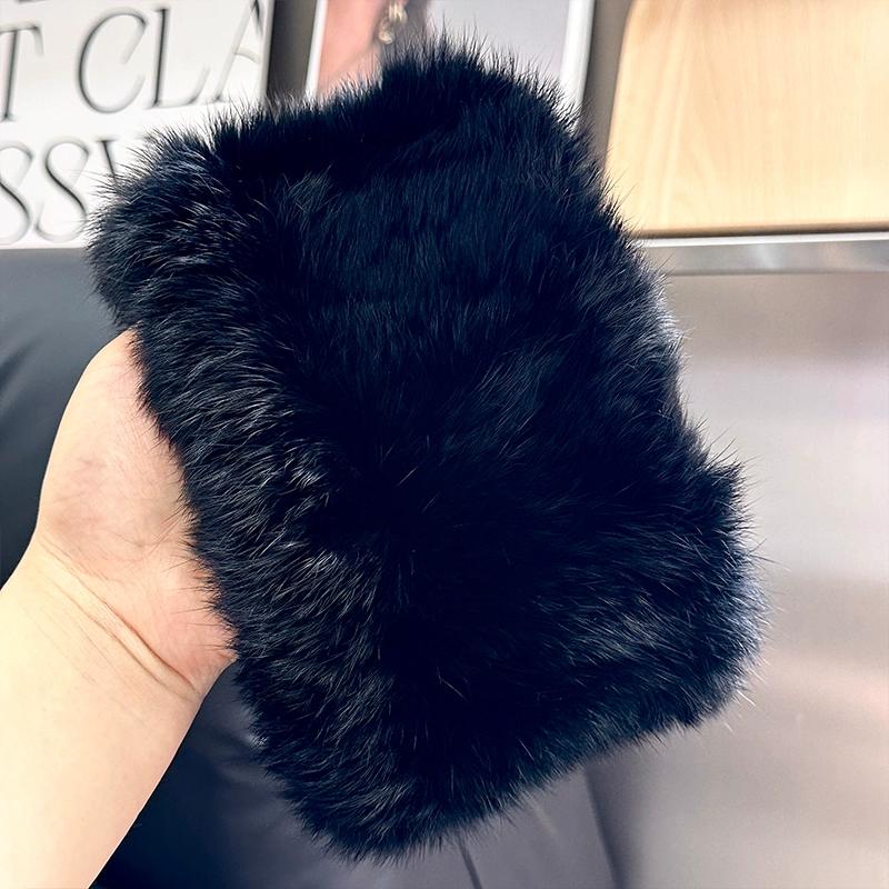 Корейский мао мао защита шеи женский шарф из кроличьего меха повязка на голову осень-зима, плюшевый меховой платок на голову, повязка на голову, головной убор чёрный