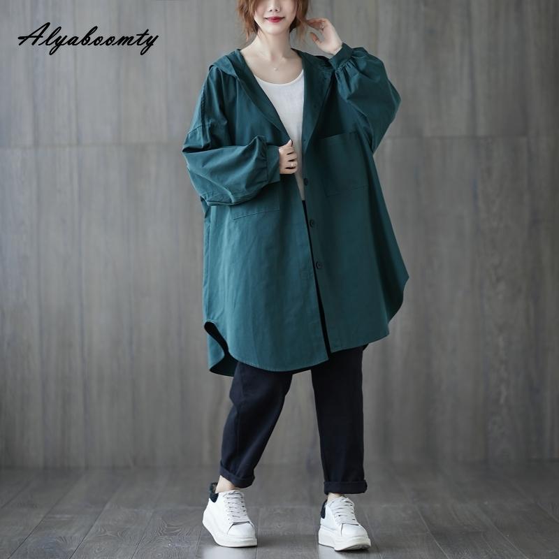 Корейский стиль Весна Осень Женская Оверсайз Длинная Блузка Худи Серая Черная Темно-зеленая Мешковатое Пальто Большого размера Повседневная Свободная Женская Базовая Верхняя Одежда ONE SIZE