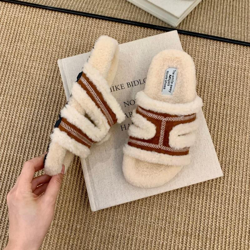 Корейский стиль, высокое чувство, интернет-знаменитость, толстая подошва, надпись с волосами, обувь для волос, женские 2025 осень и зима, новинка, нежные хлопковые тапочки 40 коричневый
