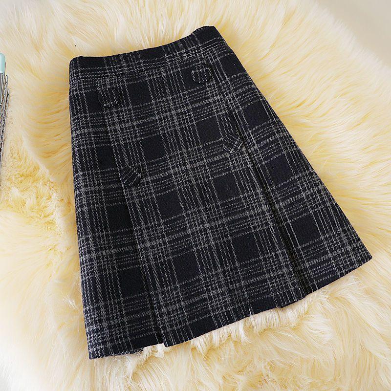 Корейский стиль преппи осенняя женская пуговица в клетку молния нестандартная мода офисная женская повседневная тонкая высокая талия короткая юбка А-силуэта M