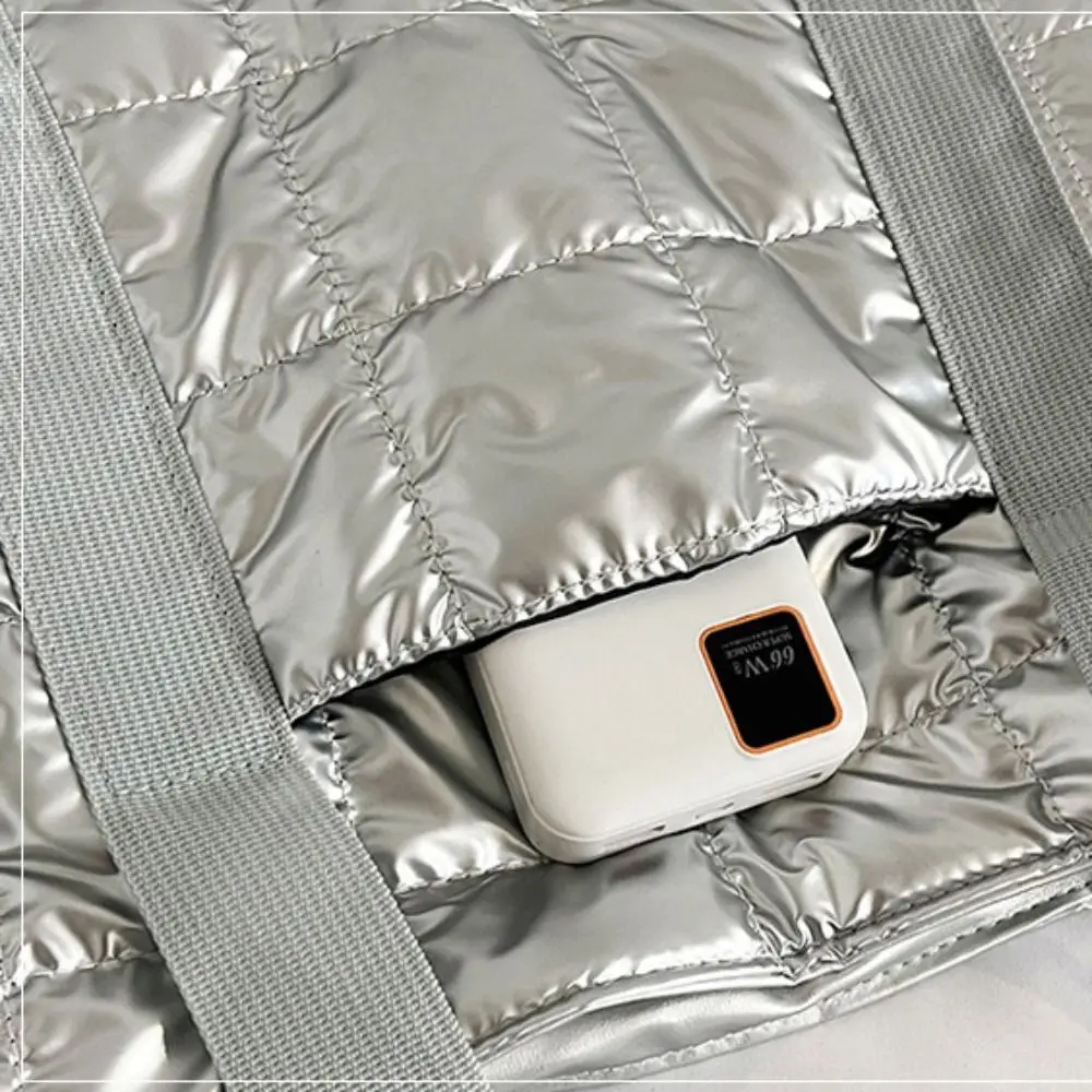 Корейский стиль, пуховая хлопковая сумка на плечо, большая вместительная клетчатая сумка-тоут с хлопковой подкладкой, однотонная легкая нейлоновая сумка для женщин