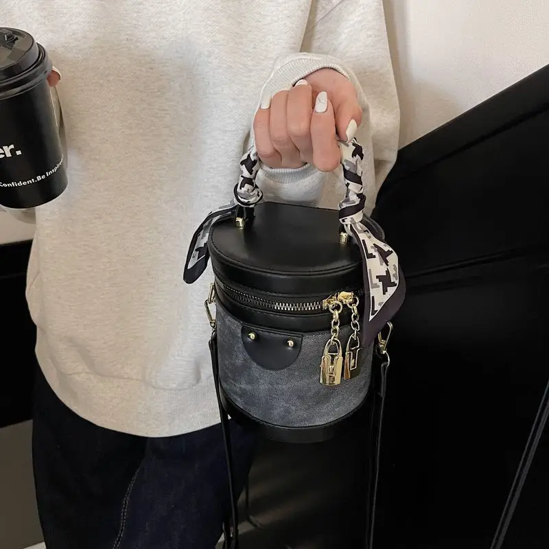 Корейский стиль, цветная цилиндрическая сумка, женская маленькая вместительная сумка-ведро, женская элегантная сумка через плечо с ручкой-шарфом, новинка