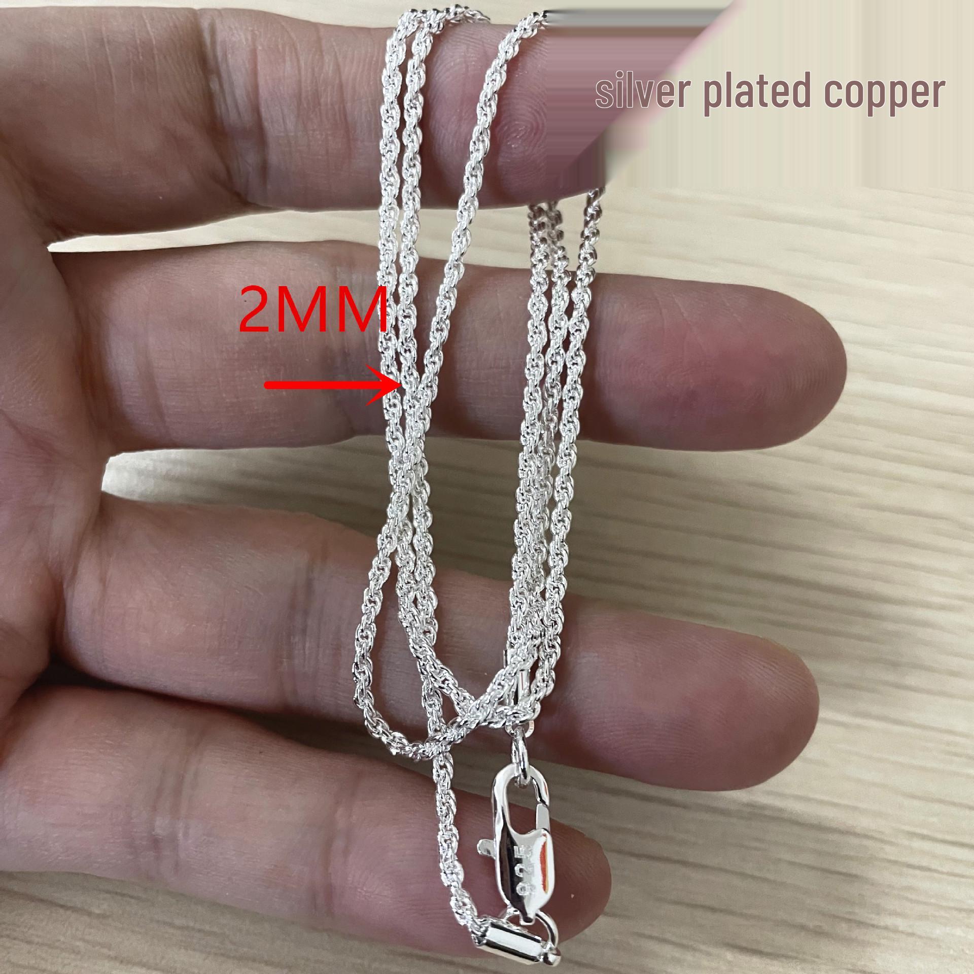 Корейский стиль 2 мм веревочная цепочка «елочка», посеребренная медь, длина 16-30 дюймов, в наличии 40CM Necklace