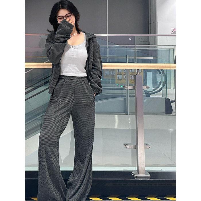 Корейский шик Полосатое пальто и брюки палаццо Комплект-двойка для женщин Extra Large