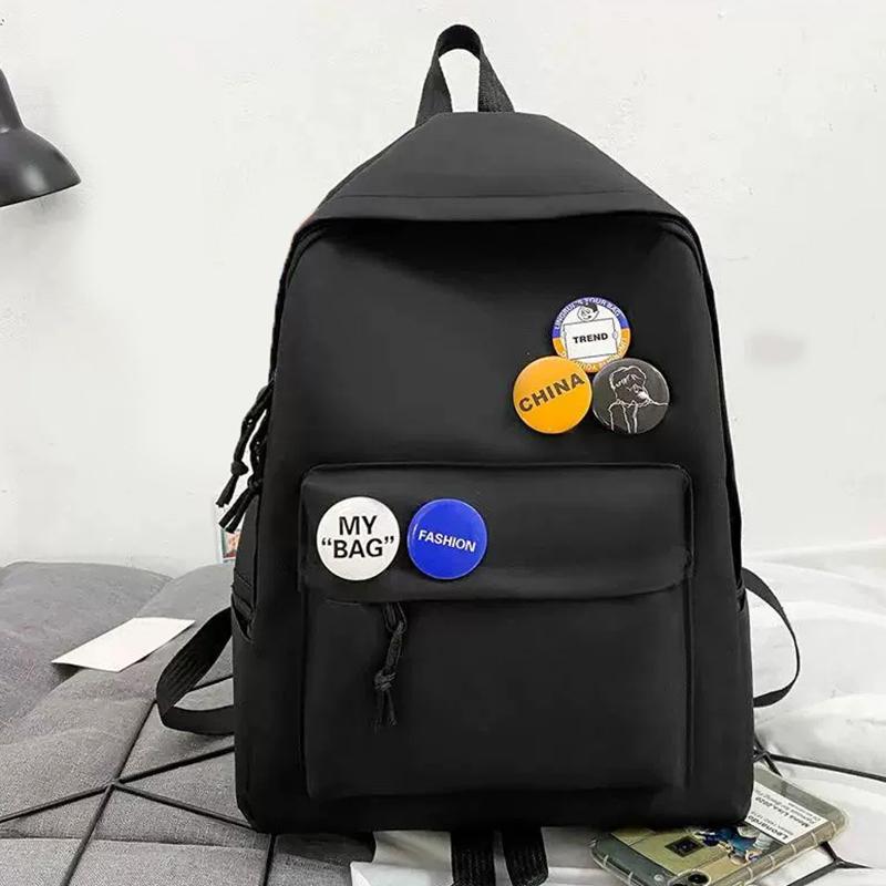 Корейский школьный рюкзак с 5 значками Рюкзак нейлоновый дорожный на плечо чёрный