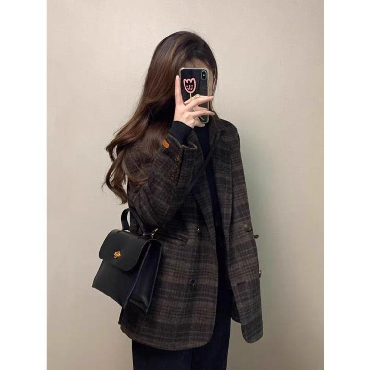 Корейское зимнее женское короткое шерстяное пальто Высококачественная клетчатая твидовая куртка Модная верхняя одежда Теплая и стильная XXL
