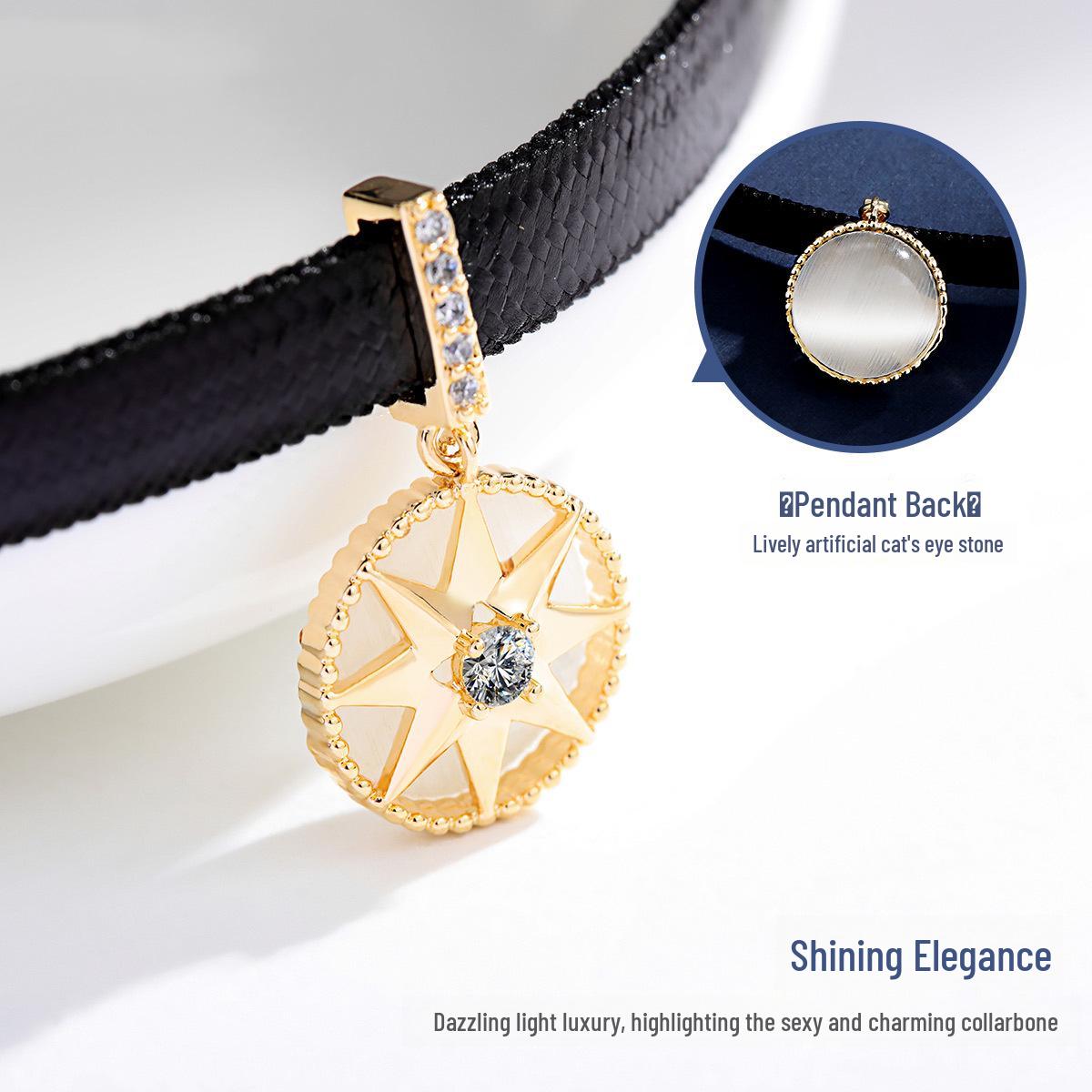 Корейское ожерелье-чокер с компасом для женщин - черное кожаное ожерелье-чокер золотой