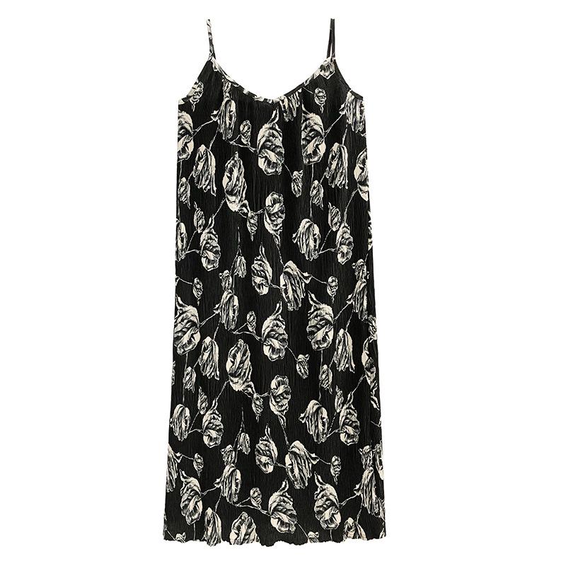 Корейское платье-майка без рукавов плиссе в гонконгском стиле - Женское летнее модное свободное платье с завязками, стройнящее фигуру One Size чёрный