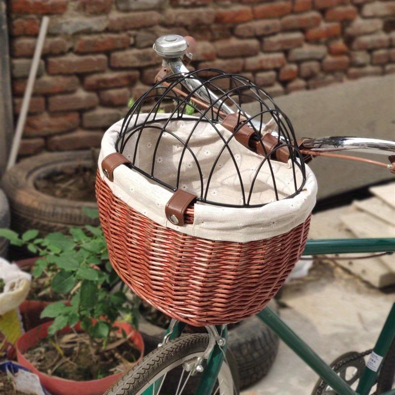 Корзина для велосипеда из плетеного ротанга Baisher с крышкой - прочное акриловое волокно, удобная для переноски собак и кошек спереди коричневый