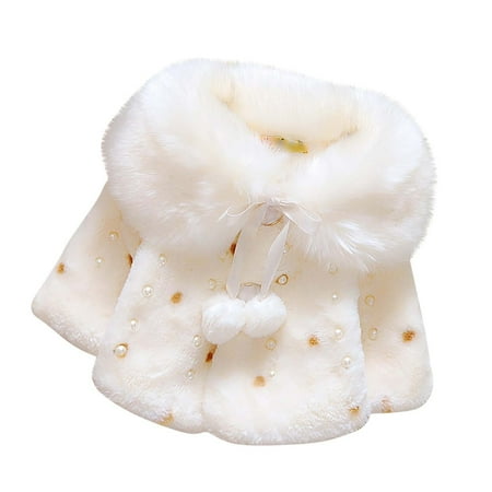 Kids Jackets for Girls Boys Autumn Winter Baby Polka Dot Pearl Decoration Plush Warm Cotton Coat