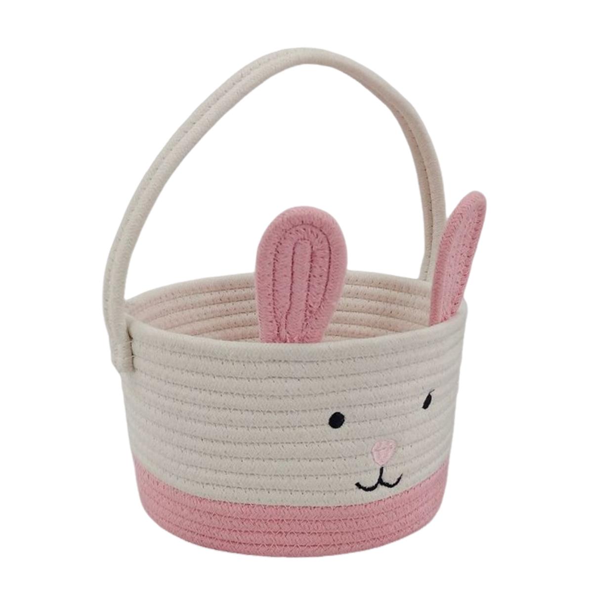 Корзина для пасхального кролика для детей, маленькая плетеная корзина из хлопковой веревки с ручкой и кроличьими ушками, пустая корзина для яиц в виде кролика для малышей и младенцев