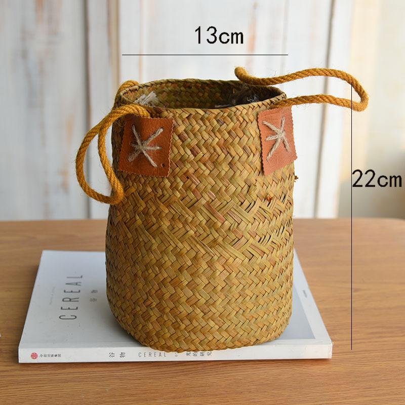 Корзина для хранения из морской травы, полностью натуральная плетеная ивовая корзина для белья, кашпо для растений и цветов для украшения дома и сада, ива small