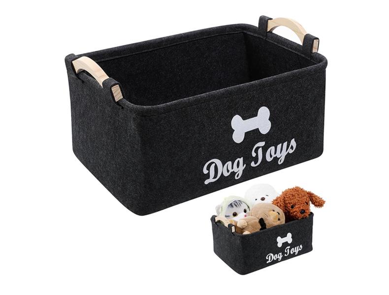 Корзина для хранения питомцев: Фетровая квадратная корзина с деревянной ручкой для игрушек, закусок, белья и мелочей.