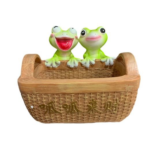 Корзина для хранения с миниатюрными фигурками лягушек, многоцелевая, вместительная, с милым дизайном в виде лягушки
