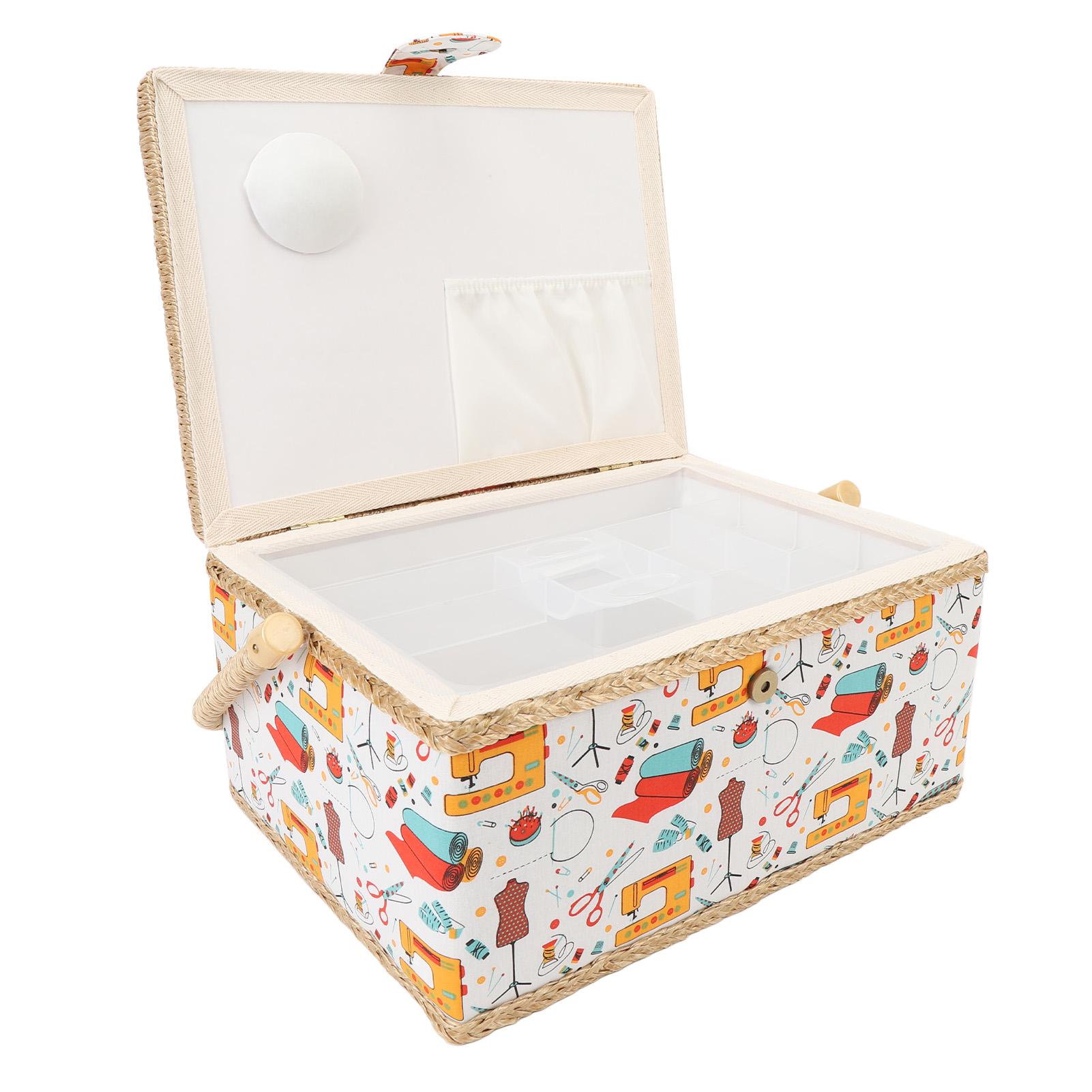 Корзина для шитья Большая вместимость Портативная коробка для хранения швейных принадлежностей со съемным пластиковым лотком