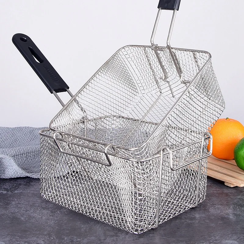 Корзина из нержавеющей стали для жарки, прямоугольная сетчатая Ситечка с длинной ручкой, инструмент для приготовления пищи, презентационна...