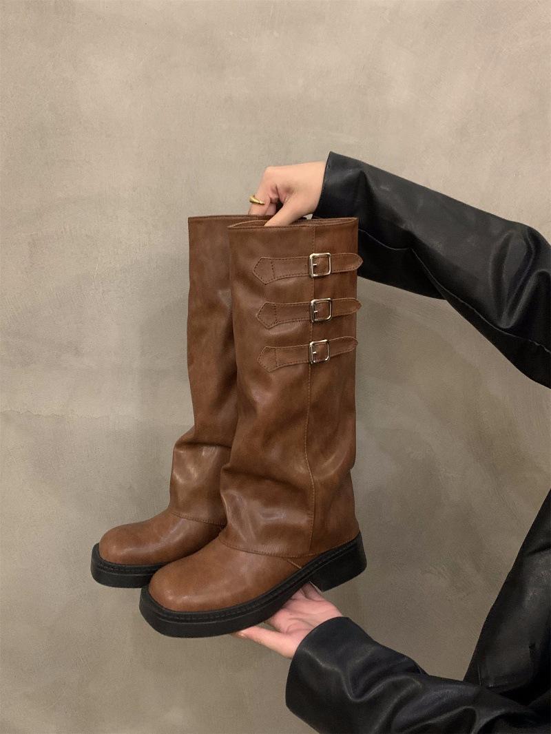 Коричневые Ретро Высокие Штаны Ботинки Рыцарские Ботинки Маленькие Длинные Ботинки Весна Лето Толстая Подошва Женские Ботинки Западные Ковбойские Ботинки 39 коричневый