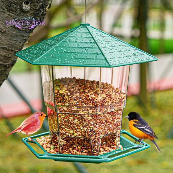 Кормушка для птиц, большая емкость, прозрачная, дренажное отверстие, подвесная на открытом воздухе, дикая птица