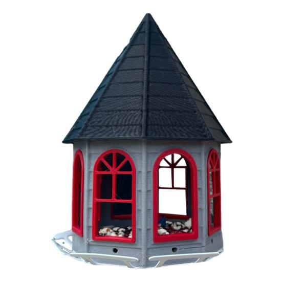 Кормушка для птиц, подвесной домик для птиц, большая вместимость, кормушка для птиц с насестом, красная крыша для украшения сада, балкона, двора красный
