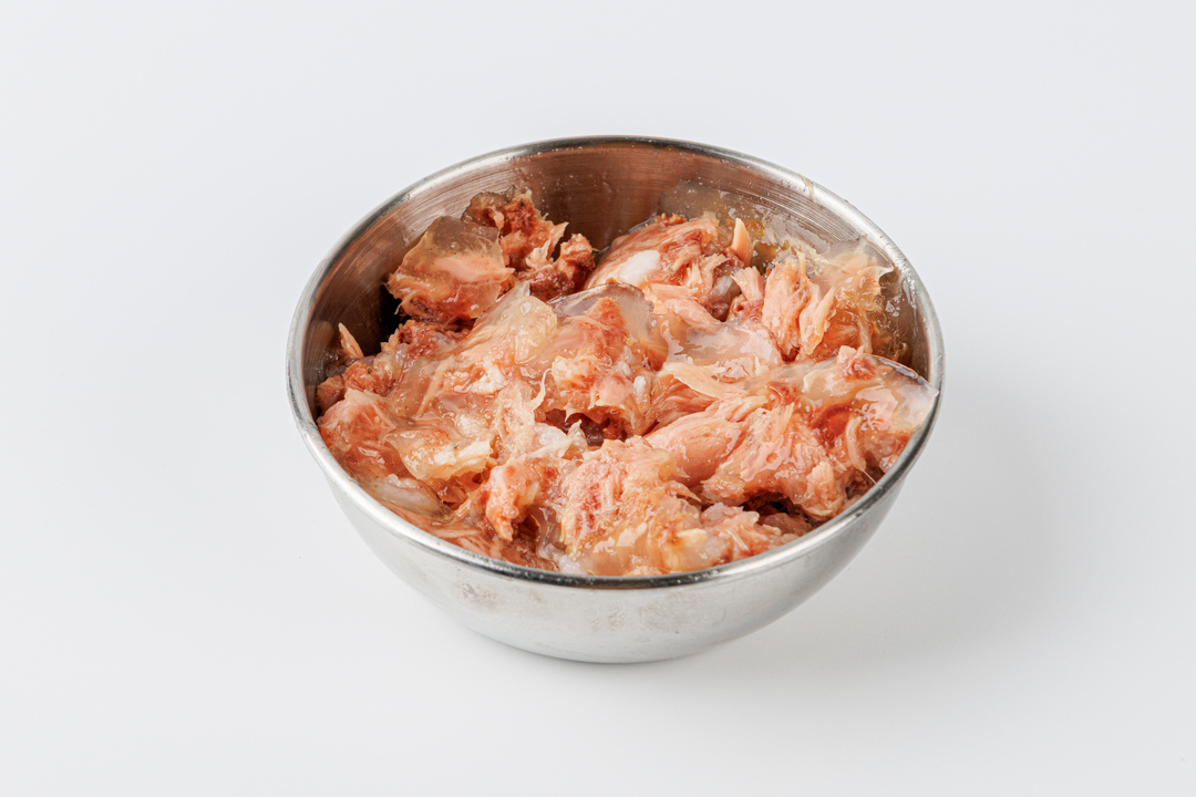 Сведения о составе: тунец 45%, желе 50,14% (вода, желирующая добавка, витамин Е), лосось 1,43%, курица 1,43%, рис 2%