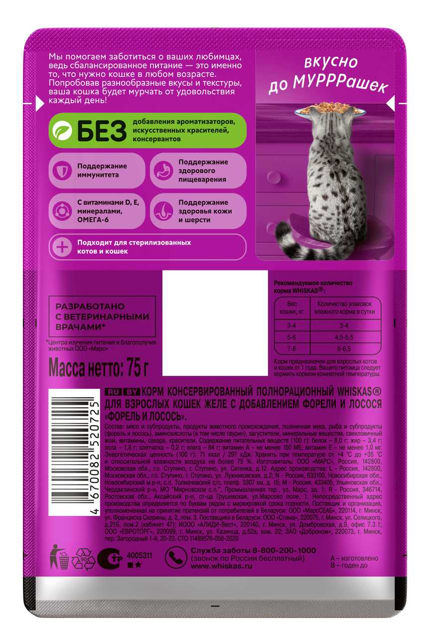 Корм влажный для кошек Whiskas Желе форель-лосось 75 г