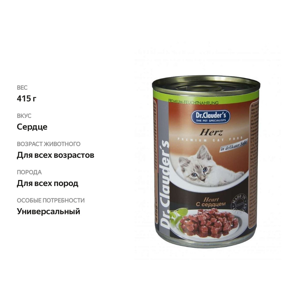 Корм консервированный для кошек Dr.Clauder's кусочки в соусе с сердцем 415 г