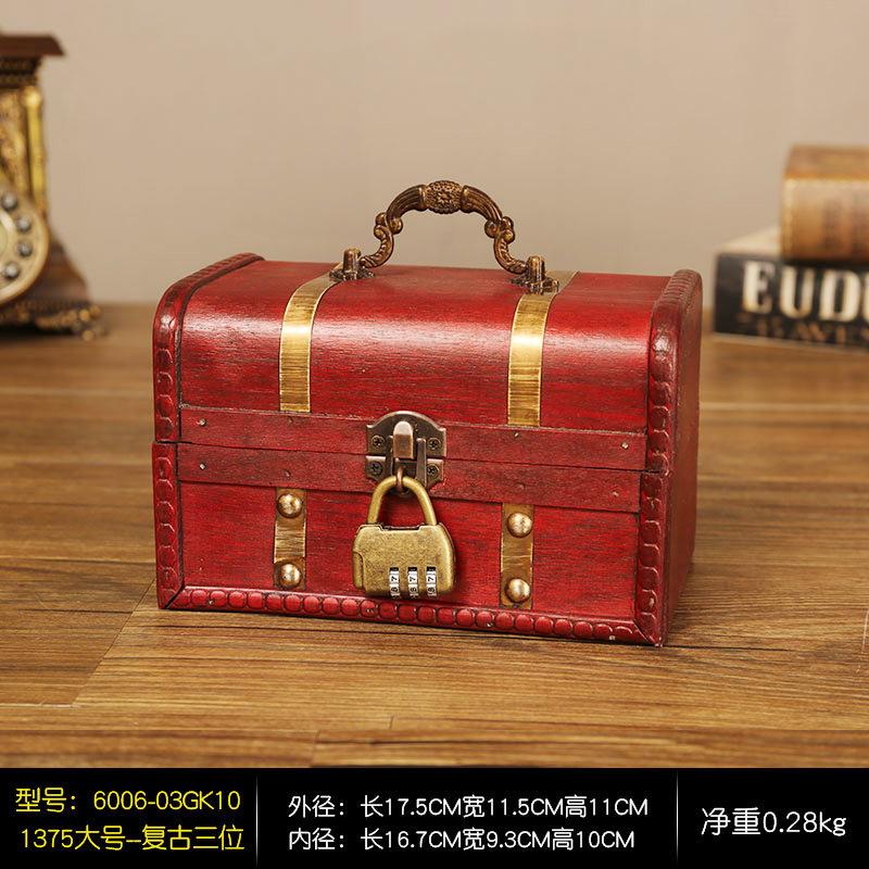 Коробка в европейском стиле в стиле ретро, деревянная коробка для хранения ювелирных изделий, настольная органайзерная коробка для домашнего хранения с крышкой, деревянная коробка с регулируемым замком 17.5cm