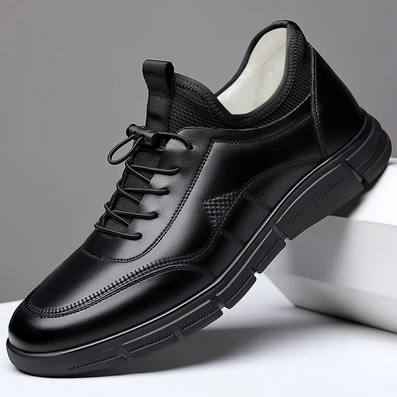 Осень-зима, новая мужская повседневная обувь из натуральной кожи, модная спортивная стильная обувь для отдыха, кроссовки из коровьей кожи, плюшевые ботинки