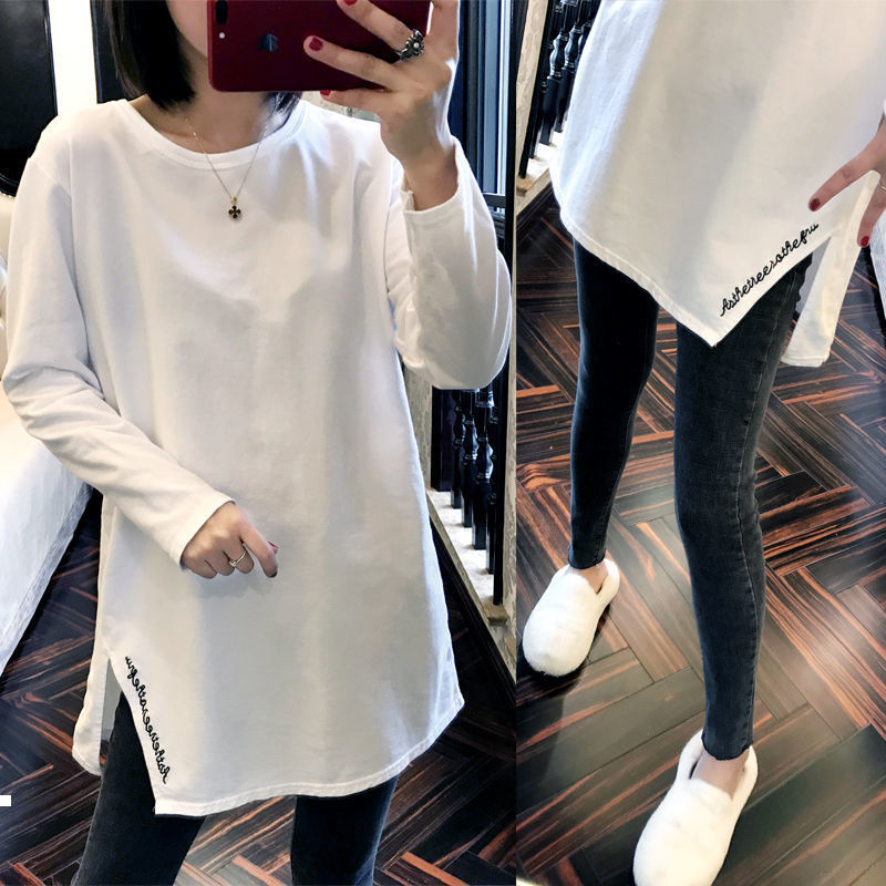 new large women's net red stitching thickened t-shirt in autumn and winter 2021, White