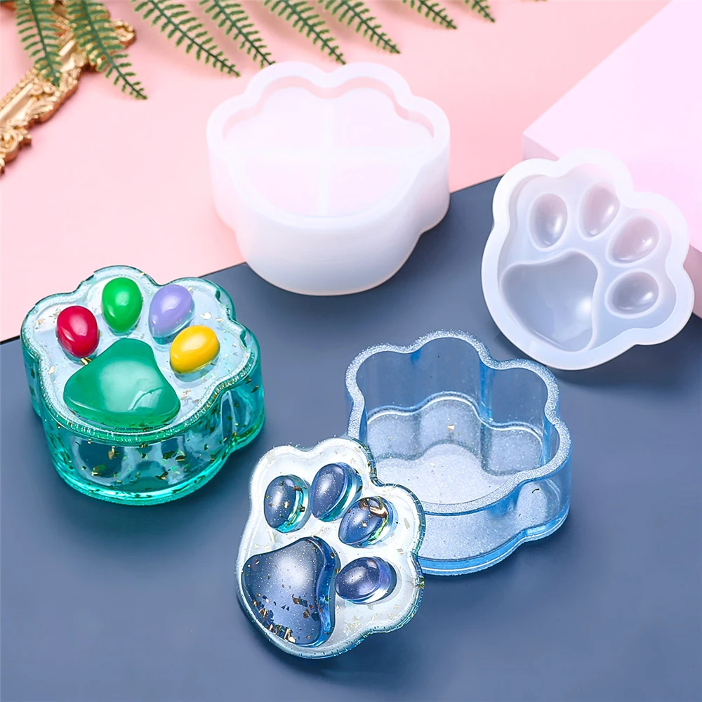 Коробка для хранения кошачьей медвежьей лапы, набор пресс-форм из смолы с крышкой, силиконовая форма для литья под эпоксидную смолу для руко...