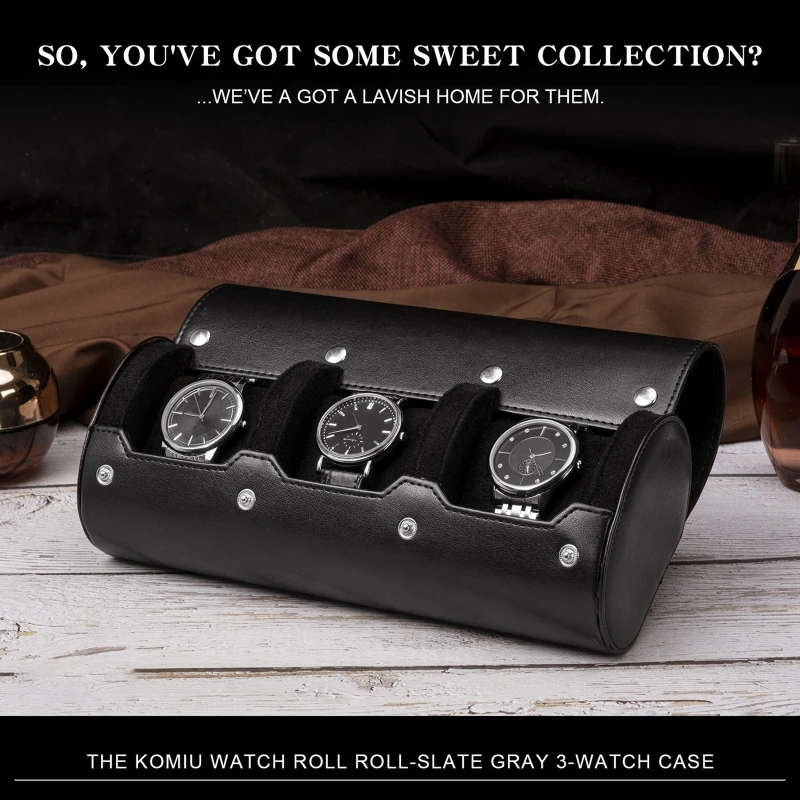 Коробка для часов с 3 отделениями, черная, темно-коричневая кожаная коробка для хранения часов, чехол для часов, органайзер для чехла, диспле...